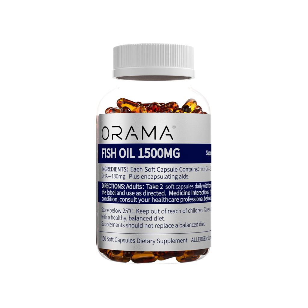 ORAMA Fish Oil 1500mg 150 Soft Capsules delivers a higher dose omega-3 to support cardiovascular health, brain function, and joint comfort in a convenient daily serving.