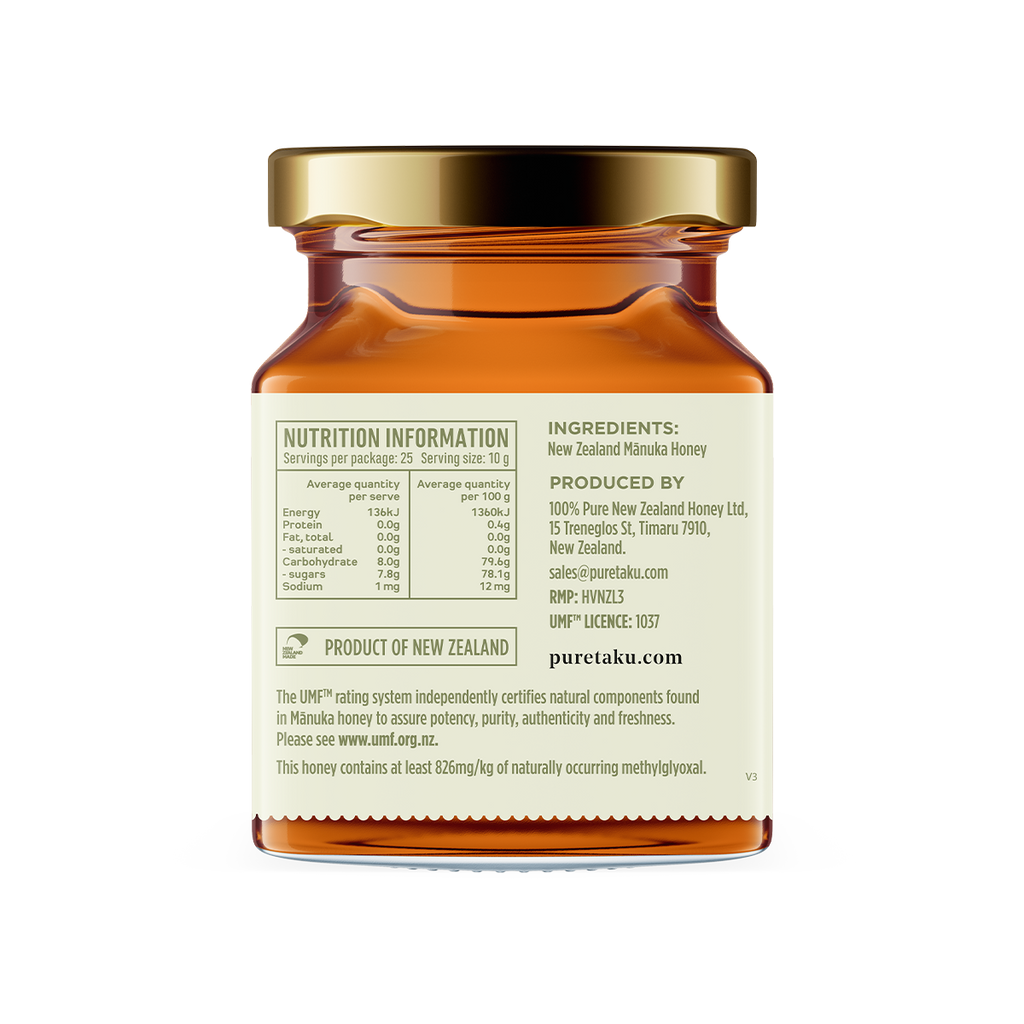 Taku Manuka Honey UMF 20+ MGO 826+ Glass Jar 250g