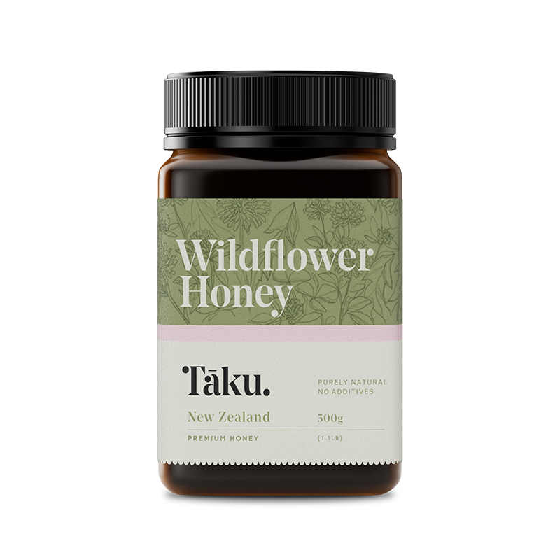 Taku Wildflower Honey is nature’s colourful blend — a golden taste of New Zealand’s wild blossoms in every spoonful.