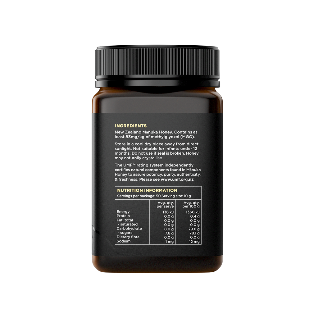 - UMF™ 5+ / MGO 83+: certified potency appropriate for daily use.