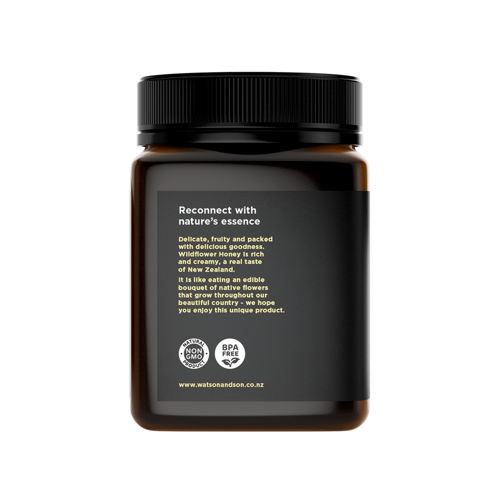 Watson & Son Wildflower Honey 1kg is a seasonal New Zealand honey, crafted from a variety of native wildflowers. Rich, fruity, and creamy, it delivers a naturally sweet taste with floral undertones that embody the essence of New Zealand’s diverse landscapes.