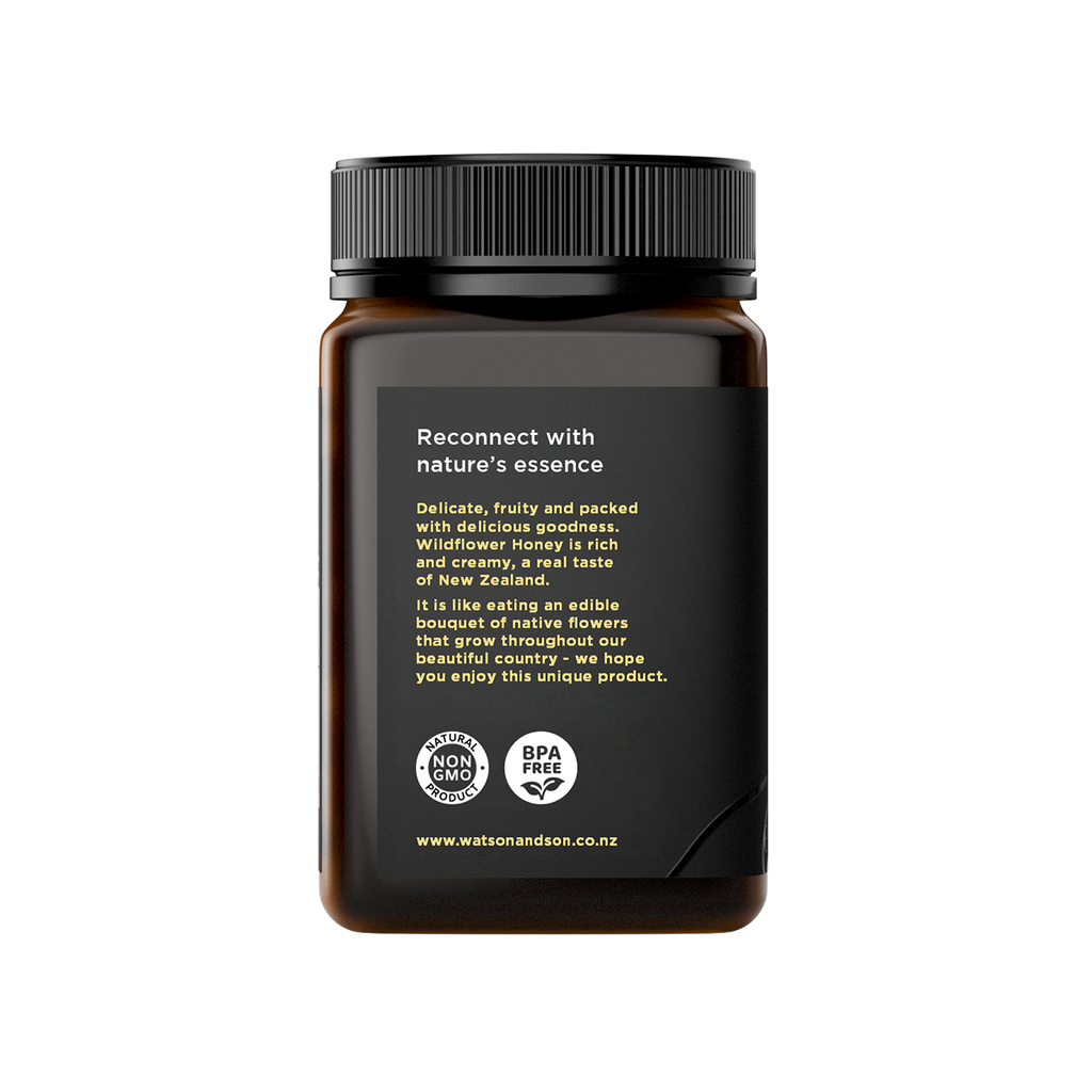Watson & Son Wildflower Honey 500g is a seasonal New Zealand honey, crafted from a variety of native wildflowers. Rich, fruity, and creamy, it delivers a naturally sweet taste with floral undertones that embody the essence of New Zealand’s diverse landscapes.